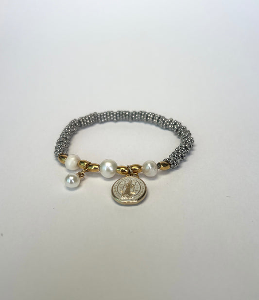 Pulsera "Virgen de Guadalupe” Zirconia con Perla