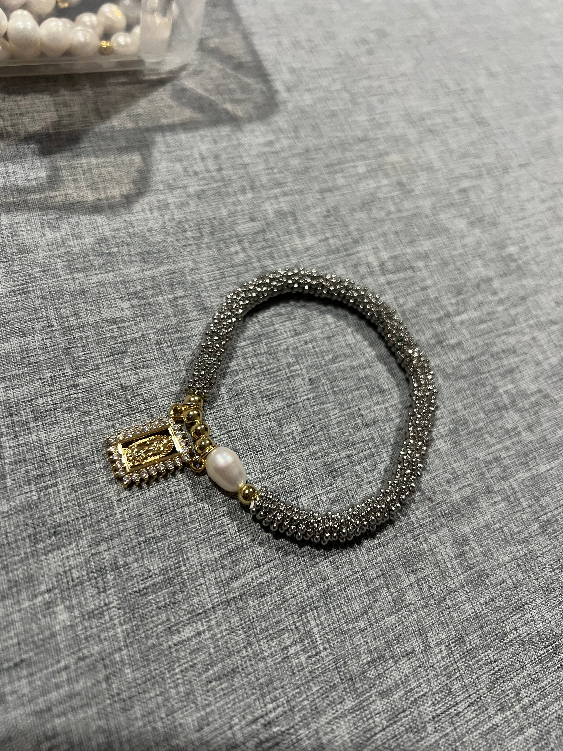 Pulsera "Virgen de Guadalupe” Zirconia con Perla